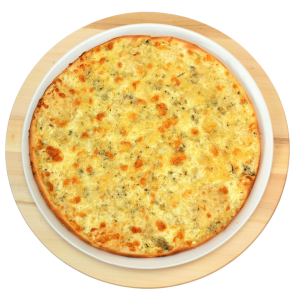 Sos pizza, bacon, salam, branza cu mucegai, mozzarella, oregano.