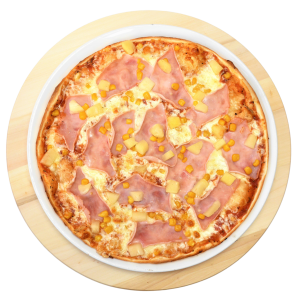 Sos pizza, mozzarella, sunca, ananas, porumb.